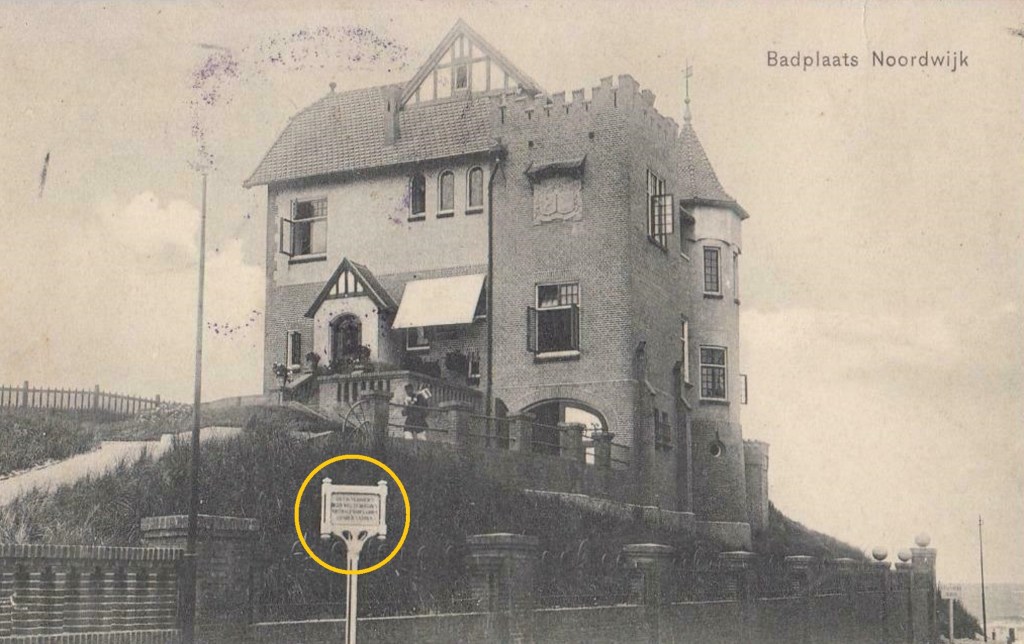 Bij deze foto van de Villa Seehorst heb ik me altijd afgevraagd wat er nu precies op dat bord stond, beneden aan de voet van de heuvel. Ik heb nog geen scherpere versie van de foto gezien, waarop ik met wat vergrotingen de tekst zou kunnen ontcijferen. Helaas.