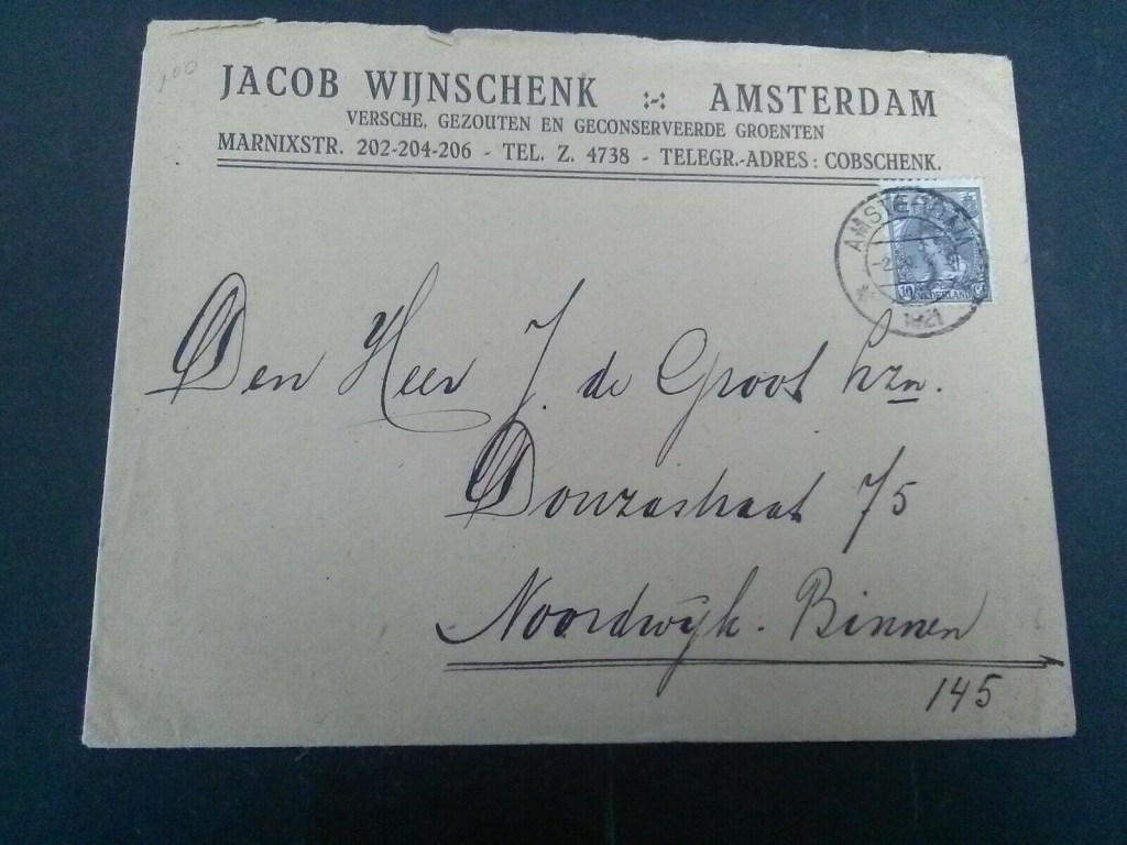 De Groot had aan de Douzastraat in Noordwijk een groentedrogerij. Daarvan waren er wel meer in Noordwijk. Kort na WO I was het lucratiever om die tak van sport te bedrijven dan op te gaan in de bloembollenteelt. De brief uit 1921 van Wijnschenk aan De Groot betrof de vraag of De Groot “erop was toegericht de door hem geoffereerde gedroogde wortelen en knolrapen in schijfjes te kunnen leveren?”