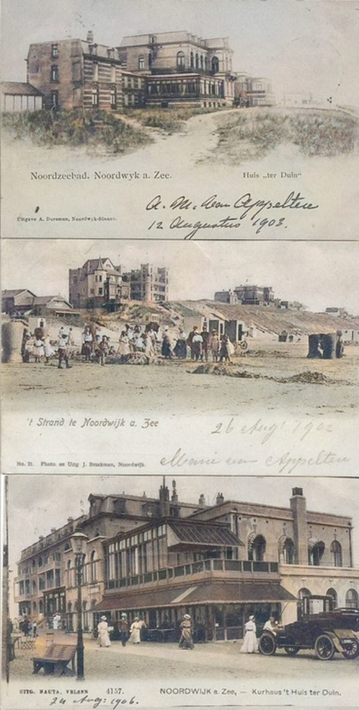 Drie kaarten van Huis ter Duin: van Dorsman, Braakman en Nauta, drie van de uitgeverijen/fotografen die tussen 1900 en 1930 veel van Noordwijk hebben vastgelegd.