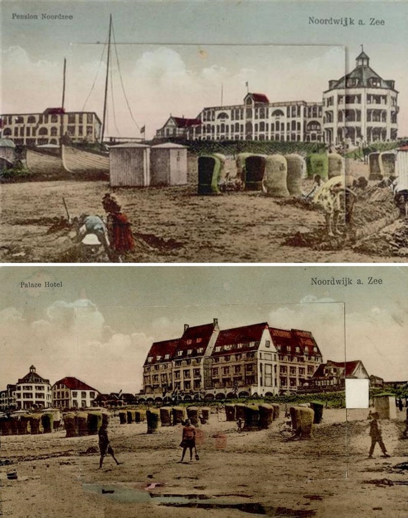 Twee zogenoemde ‘Leporello-kaarten’, fotokaarten met een luikje waarachter een hele reeks kleinere fotootjes verborgen gaat. Eén van Palace en één van Noordzee. Waren er nog meer hotels die zukke kaarten hadden?