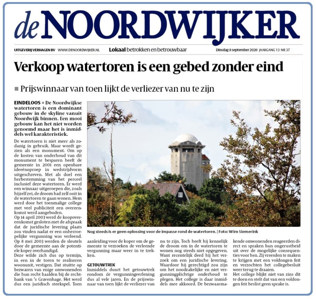 Vijf jaar geleden schreef ik er al over: over de redding van de watertoren door een private architect, die er mooie bouwkundige plannen mee had en daarmee als vrijwel enige een gooi deed naar de redding van dit misschien niet ontzettend mooie, maar voor Noordwijk wel iconische gebouw.