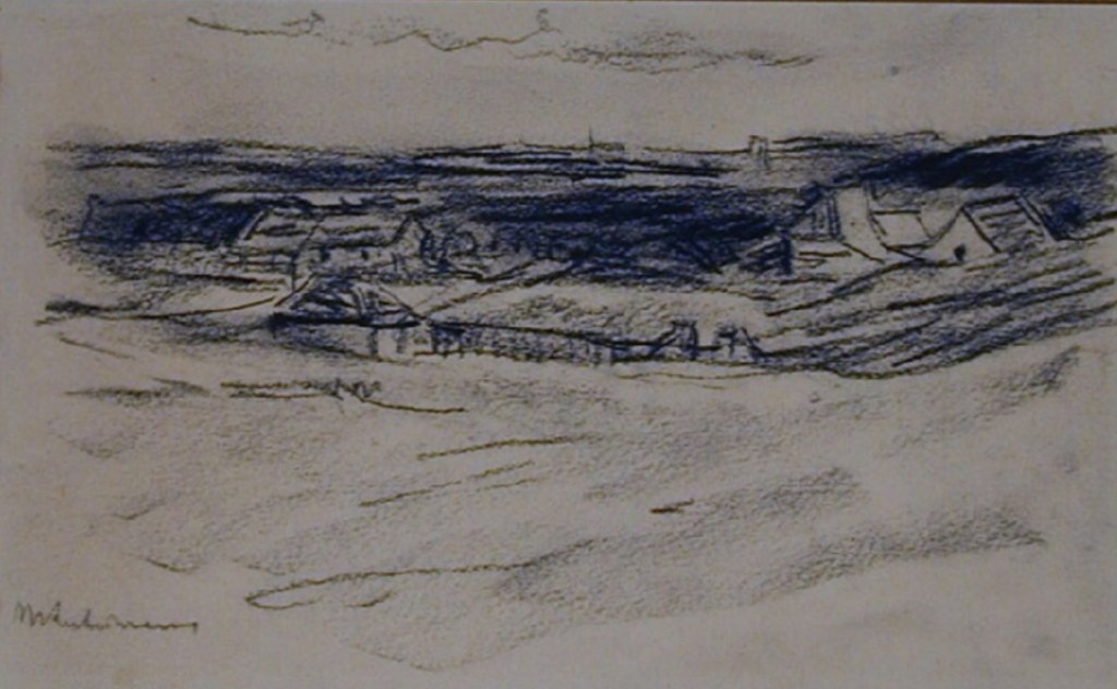 Het is eigenlijk een doodzonde om een tekening van Max Liebermann als ‘zoekplaatje’ te betitelen. Maar ja. Ik kom deze tekening van hummes tegen in de collectie van het Ashmolean in Oxford onder de titel “Dunes at Noordwijk”. Maar waar Liebermann nu precies zat toen hij dit beeld schetste is me een raadsel. In de verte vermoedelijk de kerktoren van Noordwijk Binnen, maar op de voorgrond? Wie het weet mag het schrijven.