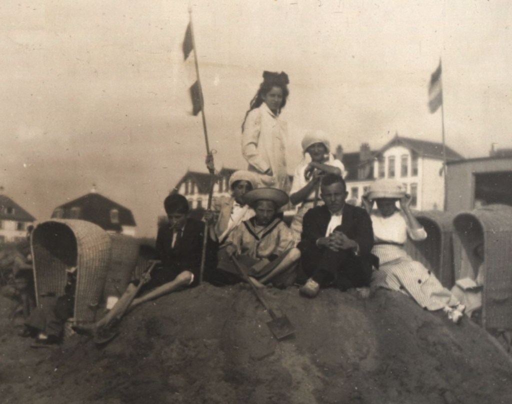 De foto is – gezien de staat van Pension Noordzee op de achtergrond – genomen rond 1907/1908, vermoed ik. Spelende kinderen op het strand, zo veel is wel duidelijk. Maar bijzonder is hier de aanwezigheid – helemaal links – van Charles Olke van der Plas, die later voor Nederland nog een belangrijke diplomatieke en bestuurlijke rol zou spelen in het Midden- en Verre Oosten. De wikipedia doet het in het Engels: