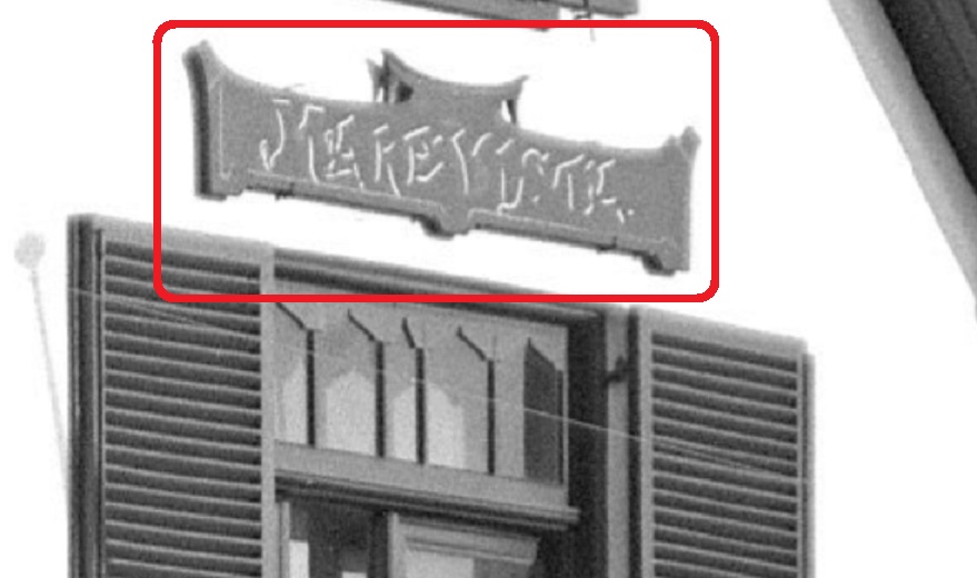 Men had moeite gedaan om het naambord van de villa een beetje op te leuken, maar dat was wat mij betreft wel een beetje gezocht. Het ontcijferen der lettertekens is wel mogelijk, maar niet dan nadat je beide ogen er scheel van gaan staan: