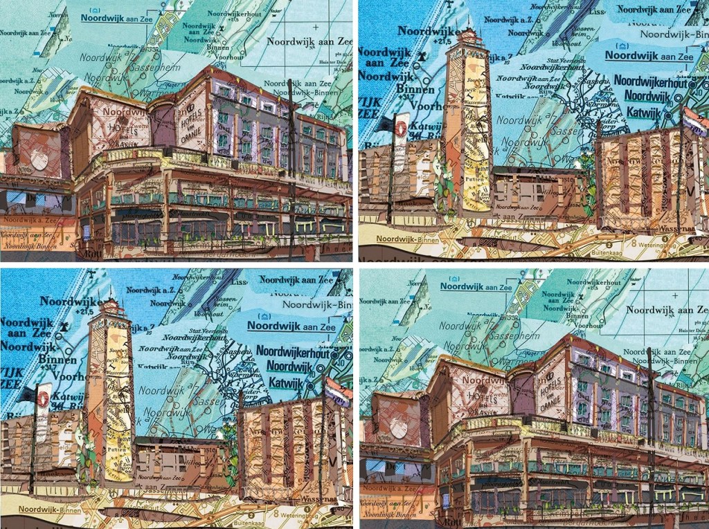 Ik mag graag een beetje rommelen met afbeeldingen van Noordwijk, maar deze verrommeling heb ik nooit kunnen verzinnen. iemand anders wel en die biedt het nog aan op internet ook.