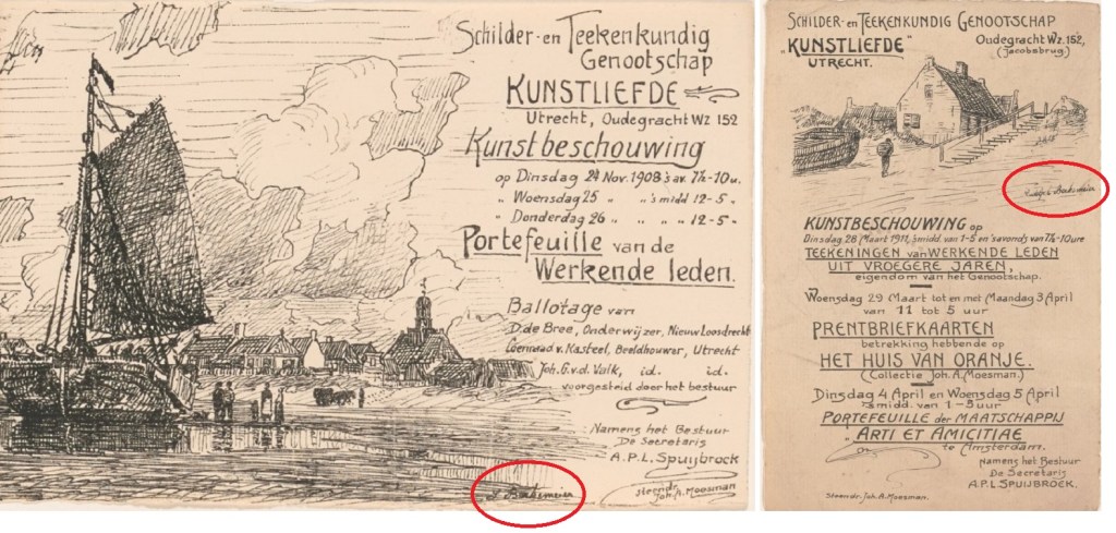 Ron heeft weer een mooie vondst gedaan: een foldertje van het Schilder- en Teekenkundig Genootschap te Utrecht met daarop twee – ongetwijfeld Noordwijksche – tekeningen van de hand van Ludolpg Berkemeier.