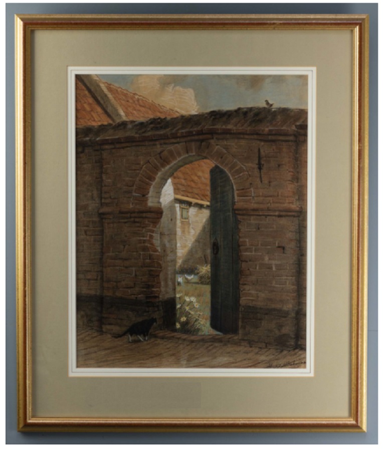Ludolph Georg Julius Berkemeijer (1864-1931): “Poortje van het Gasthuis in de Hoofdstraat te Noordwijk aan Zee”. Voilà, de pastel is te koop bij het Leidsche veilinghuis “Onder de Boompjes.” Ik publiceer dit allemaal daags nadat er op het kavel geboden kon worden. Om te voorkomen dat ik slapende honden wakker maak en de prijs verder opgedreven gaat worden. En dat zou bevriende kringen die mee wilden bieden alleen maar in de wielen rijden. En dat willen we natuurlijk niet. Vandaar 😊