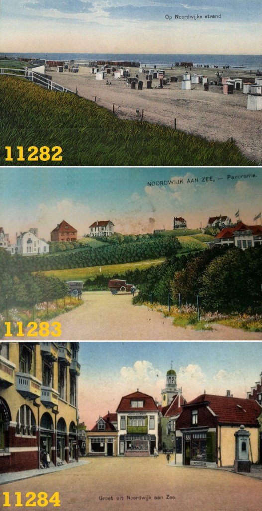 Nauta uit Velsen gaf deze drie ingekleurde kaarten uit en nummerde ze achtereenvolgens als 11282, 11283 en 11284. Maakt me nieuwsgierig naar de nummer 1170 t/m 1181 en de nummers 11285 t/m 11300.