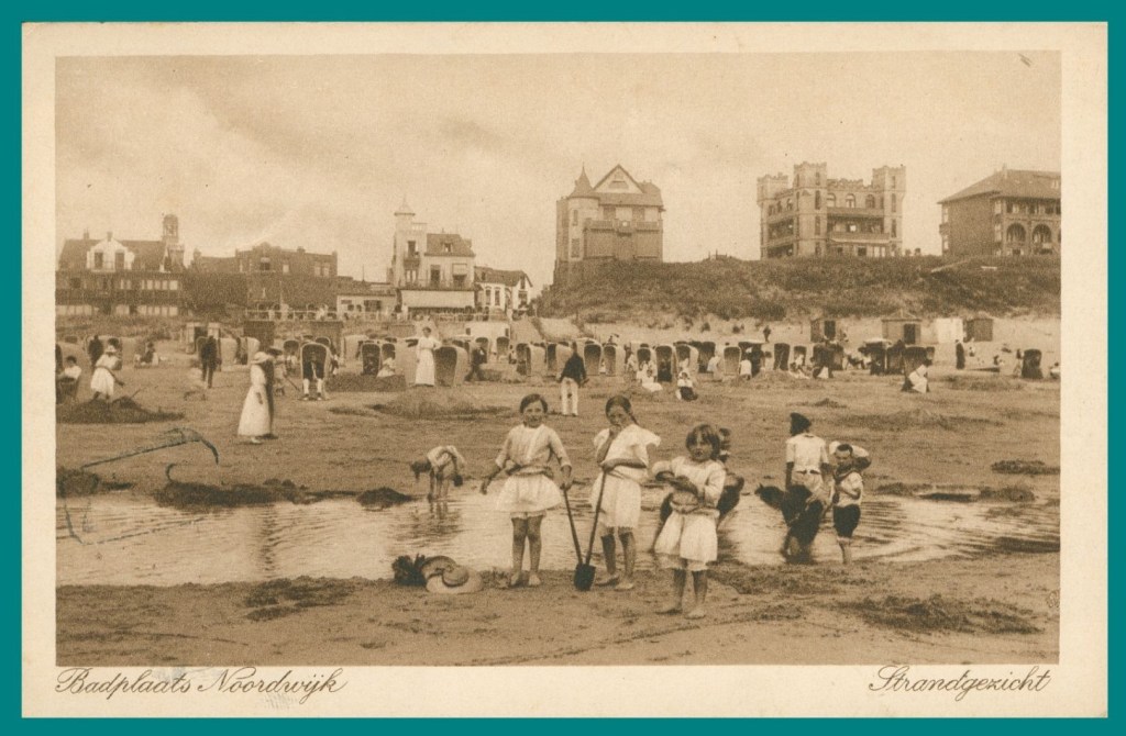 Een vooroorlogs strandgezicht van Noordwijk. De afzender schreef achterop dat het slecht weer was in Noordwijk en op de foto ziet het er ook niet zo stralend uit. Wat het weer betreft dan. De rest schittert je tegemoet.