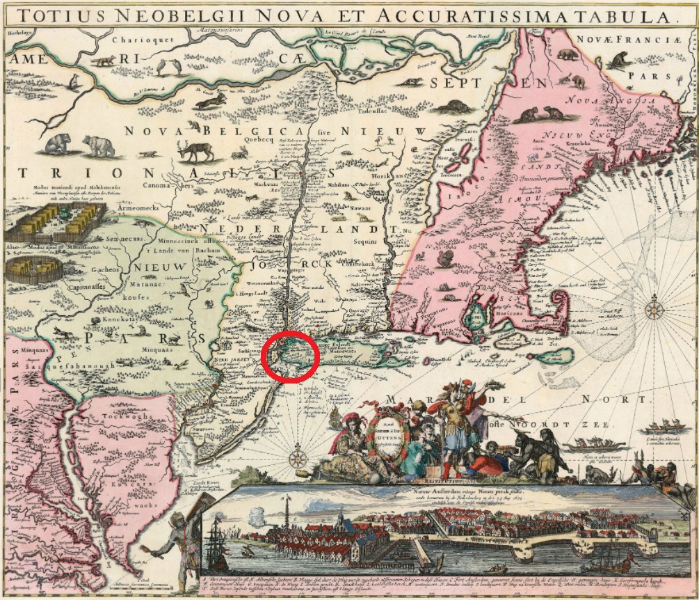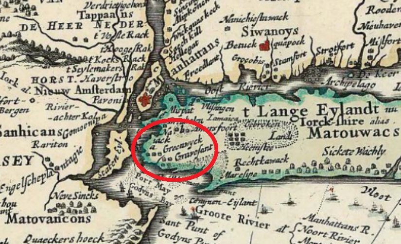 De kaart is ‘onvolkomen’ omdat het lijkt alsof Noortwijck of Greenwijck op Long Island (’t Lange Eylandt) lag, maar in werkelijkheid lag het op Manhattan, op de plek dus dat we nu kennen als Greenwich Village of liever nog ‘The Village’. De ‘onvolkomendheid’ moge ook genoegzaam blijken uit het feit dat de Atlantische Oceaan op de kaart nog ‘Noordt Zee’ heet. In de beste Trumpiaanse traditie mogen we dat wel ‘een alternatief feit’ noemen 🙂