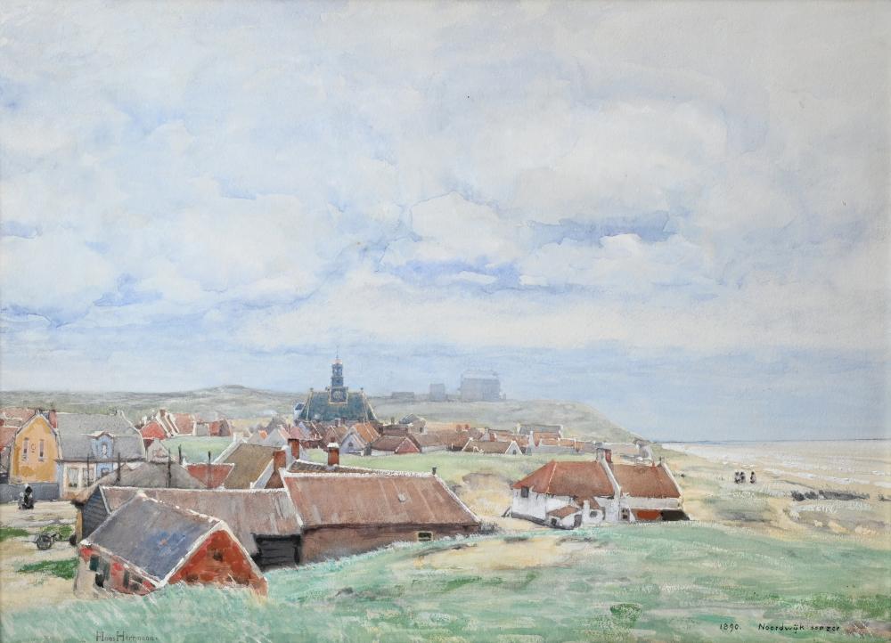 Aquarel uit 1890 van Hans (Johann) Emil Rudolf Hermann (1858 -1942), simpelweg getiteld “Noordwijk aan Zee.”
