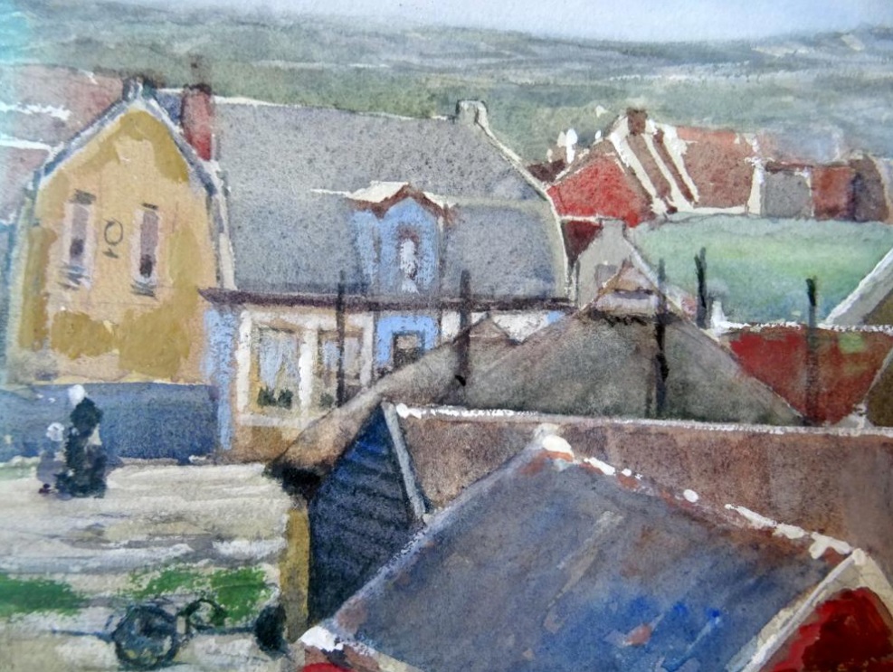 Zo’n aquarel bekijk je beter van net iets grotere afstand… Het kleurgebruik is wel bijzonder. Vind ik.