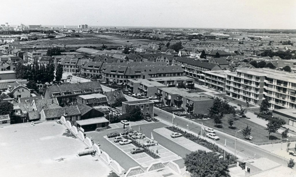 Op de oude foto, rechts de muur van het St. Jeroen bejaardenhuis, daarachter de oude keuvel, voor de muur is het railstuk van de oude tram te zien. Meer in het midden op de voorgrond de bollenschuur van Salman, de verbindings steeg naar de kerkstraat.