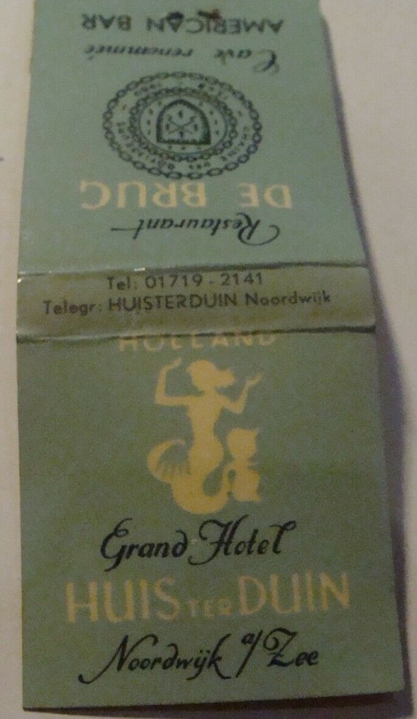 Luciferpakje van restaurant “De Brug”, onderdeel van Huis ter Duin. Waar de naam vandaan kwam? Misschien omdat het het stukje laagbouw de brug vormde tussen de twee hoofdgebouwen van Huis ter Duin? Er bevond zich ook een ‘American Bar’. Dat soort bars kwam je wel vaker tegen in Nederland, maar wat daar nu precies ‘American’ aan was?