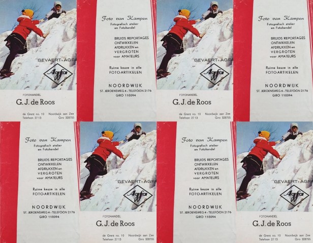 Goof Roos en Jan van Kampen waren als fotografen een begrip, respectievelijk in Noordwijk aan Zee en Noordwijk Binnen. Als je je foto’s ter ontwikkeling en afdrukking bij hen bracht kreeg je ze in mapjes zoals deze weer terug.
