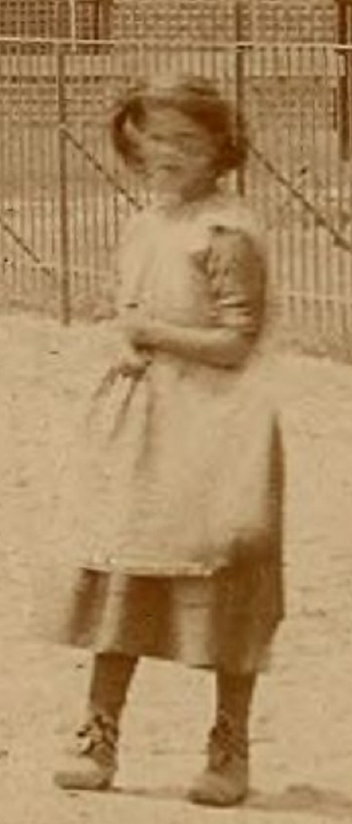 Wie het meisje op de foto is, zal wel nooit meer helder worden (misschien was het mijn opoe wel). Ze kwam toevallig op de plaat terecht toen een fotograaf een overzichtsfoto maakte schuins de Hoofdstraat in.