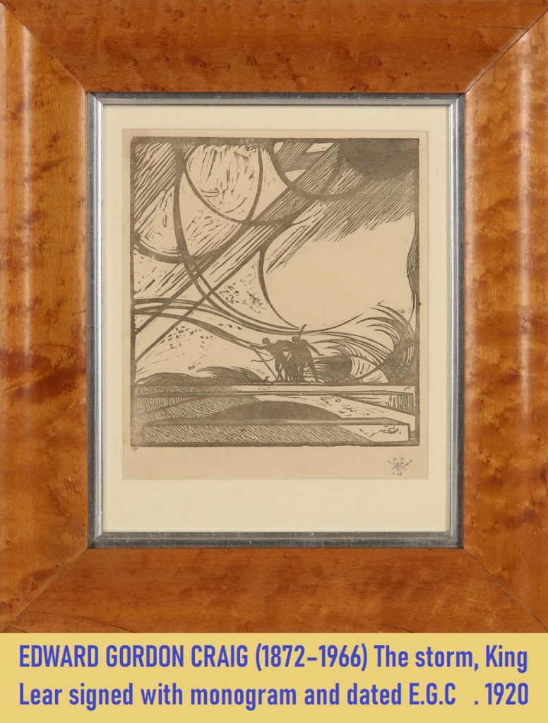 Ik heb wel eens eerder geschreven over Edward Gordon Craig, vermaard toneelhervormer, minnaar van Isadora Duncan en vader van Deirdre, het meisje dat Isadora in 1906 in Noordwijk op de wereld zette. In de periode dat Isadora in Noordwijk – in de Villa Maria – verbleef, kwam Craig slecht sporadisch langs in Noordwijk, want het lijkt erop dat hij zich niet heel veel aan moeder en kind liet liggen (hij had in Engeland nóg een heel gezin rondlopen). Hoe dan ook. Ik kom nu een houtsnede van hem tegen op een veiling in Engeland, jaren lkater gemaakt en Noordwijk al lang uit ziujn geheugen gwist. Maar toch. Het zet me toch weer heel even op zijn spoor en op de voetstappen die hij in Noordwijk achterliet.