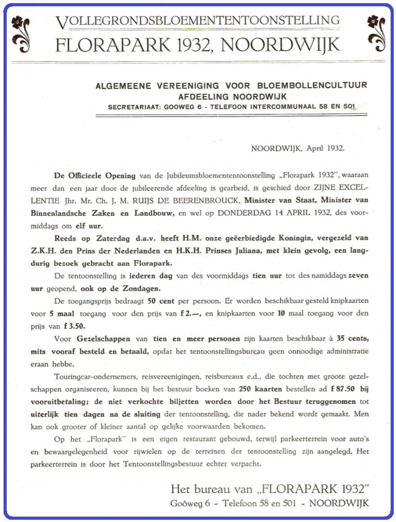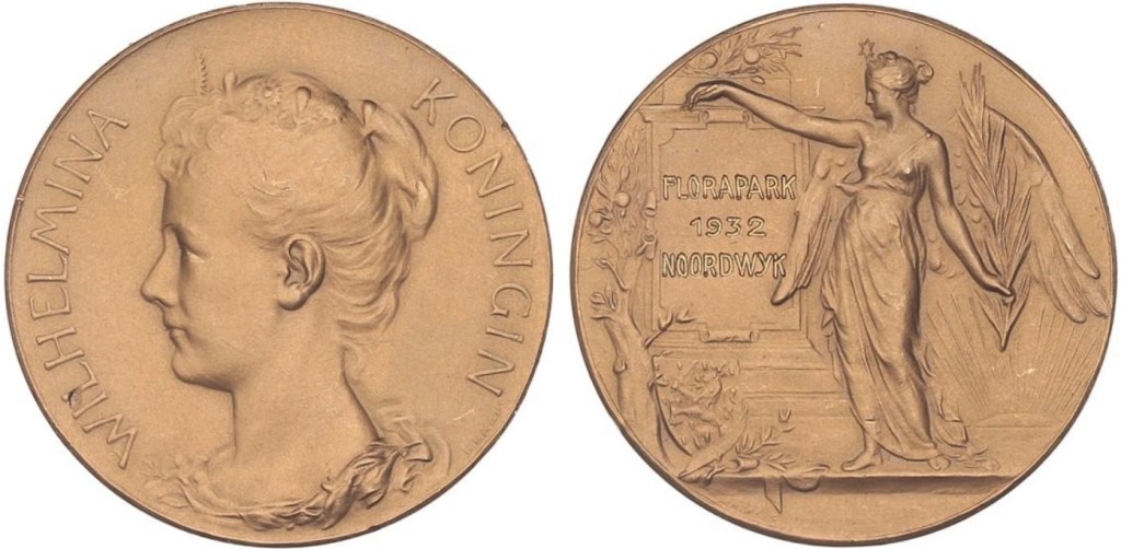 Over het Florapark van 1932 in Noordwijk – Keukenhof avant la lettre – hebben we het hier vaker gehad. Op JBEEN duikt nu de aankondiging op van een veiling waar geboden kan worden op een soortement van penning, die door HM de Koningin beschikbaar werd gesteld voor de een of andere prijswinnende inzending. Het ontwerp van de penning was van ene J.H. Baars. Inzet voor de veiling: € 1200. Ik had graag geboden, maar 1200 euro is wel een beetje veul.