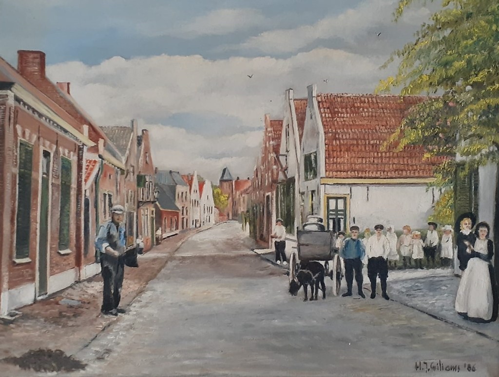 Ik heb wel eens eerder een schilderij laten zien van H.J. Giliams. Nu duikt Marina een ander schilderij van zijn hand op, van de Molenstraat in Noordwijk Binnen. Naar een foto die – op zijn beurt – weer wordt opgedoken door Ron: