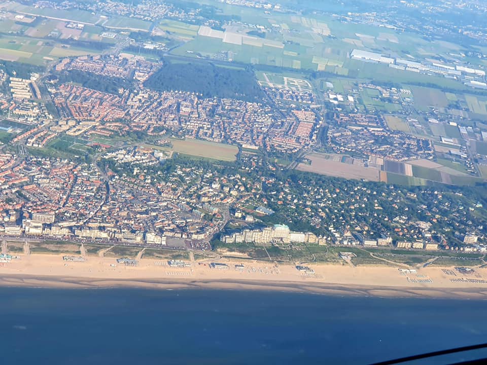 Foto van de beide Noordwijken (Zee en Binnen), door zoonlief genomen op 8 juni 2021 rond de klok van 19.00 uur. Vanuit de cockpit van een KLM-toestel. Het befaamde ‘middengebied’ dat de vissers van de bollenboeren onderscheidde is langzaam aan het verdwijnen. De vissers en de bollenboeren zijn al bijna verdwenen.
