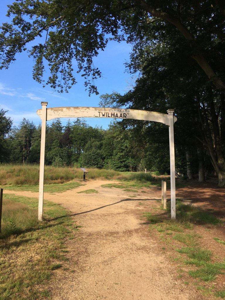 We lopen enkele etappes van het Pieterpad en voorbij Hellendoorn richting Holten stuit ik opeens op een soortement van toegangspoort met het opschrift ‘Rijkswerkkamp Twilhaar’. Daarachter twee grote foto’s van toen en een informatiebord. Twilhaar – zo blijkt – was een werkkamp van de Rijksdienst voor de Werkverruiming, bedoeld om werkloze mannen aan het werk te zetten op de Sallandse Heuvelrug. In 1940 werd een begin gemaakt met de bouw van het kamp. In 1941 kwamen de eerste arbeiders in het kamp, met name werkloze vissers uit Katwijk en Scheveningen, die de opdracht kregen een boomkwekerij aan te leggen. Staatsbosbeheer had het toezicht over het project. Dat duurde niet lang.