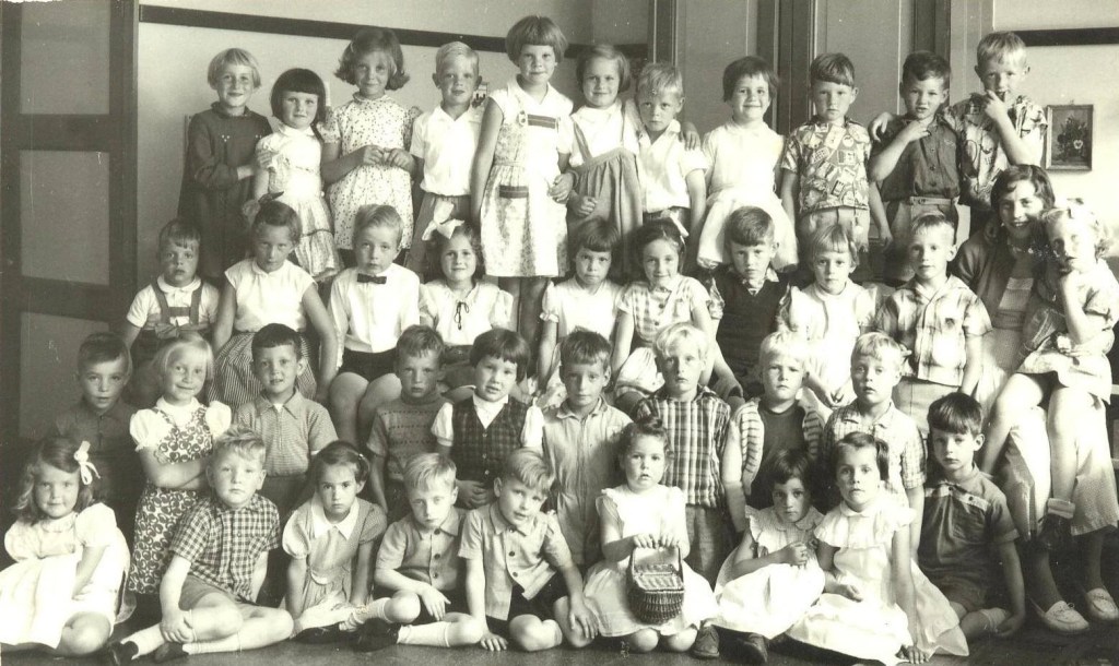 Leuk om deze foto’s terug te zien. Ik zat destijds in dezelfde klas als Antoon Klein Gunnewiek. Ik sta bovenaan, een beetje onder de indruk omdat het meisje naast mij haar om me heen heeft geslagen. Op de bovenste rij staat ook Albert Kortekaas, tweede van rechts. Met de Steenvoordens op die foto bedoel je, denk ik, Sjaak en Willem Steenvoorden.