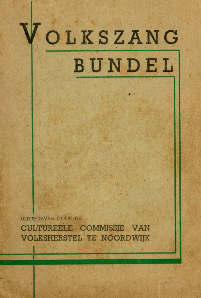 Ik krijg van Willem een kopie van de “Volkszang Bundel” uitgegeven door de Culturele Commissie van Volksherstel te Noordwijk. Een allegaartje van liederen, zoals daar onder meer waren kerstliedjes (Nu Seit Wellecoome), nationalistisch getinte liedjes (Wilhelmus en Blanke Top der Duinen), religieuze liederen, Suidafrikaanse liedjes (Sarimarijs) én ook: twee liederen aan Noordwijk gewijd.