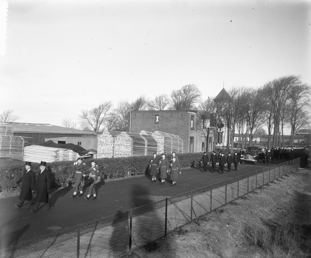 Bijzondere foto van een begrafenisstoet aan de Lijnbaanweg in Noordwijk Binnen. De foto is van de Marine Voorlichtingsdienst (MARVO) en de man die hier ten grave gedragen werd was de marinier M. Best, over wie ik niet veel verdere informatie heb. Het bijbehorende krantenbericht meldt niet veel meer dan dat hij plotseling overleden was. Hoe en waar is niet bekend. Mogelijk dat zijn dood iets uitstaande had met de toen gevoerde Koreaanse oorlog, waaraan ook Nederlandse militairen deelnamen, maar als dat al het geval was geweest, zou dat in de krant ook wel gemeld zijn geweest. Hoe dan ook was het volgens de krant een indrukwekkende begrafenis. Dat geldt wat mij betreft ook voor de foto.