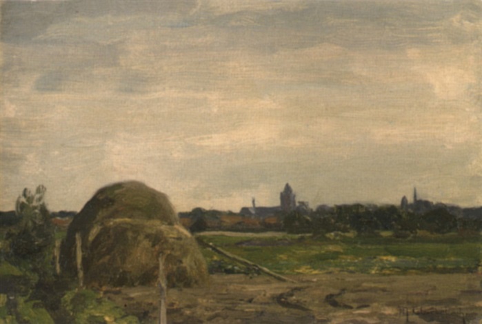 Jaques stuurt me een afbeelding van het schilderij, waarvoor bovenstaande schets blijkbaar als voorstudie diende. Vrijwel hetzelfde gezicht op Noordwijk Binnen, maar met als officiële titel: Herbstnachmittag (olieverf op karton, 29,4 x 43,5 cm, rechts onder gesigneerd).