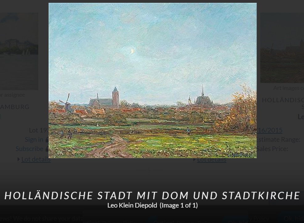 Schilderij van Leo Klein Diepold. In april a.s. opent in Museum Noordwijk een grootse overzichtstentoonstelling van zijn (Noordwijkse) werken. Of dit werk erbij hangt, weet ik niet. Bij mijn weten kwam het 7 jaar geleden voor het laatst op een veiling.