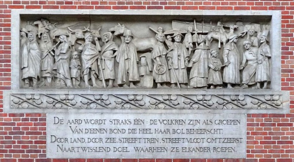 Het is alles bij elkaar een beetje verheven rijmelarij, maar toch. Albert Verwey moet er erg zijn best op hebben gedaan, gezeten achter zijn bureau in de Villa Nova op Noortuk Zee. De woorden werden in steen ingebeiteld opgehangen aan de buitenkant van het Beursgebouw van Berlage aan het Damrak in Amsterdam. Onder het nodige beeldhouwwerk van ene Lambertus Zijl. Verwey en Zijl waren beiden bevrind met Berlage. Die vriendschap betaalde zich – ook op andere plekken van het Beursgebouw – ruimschoots uit.