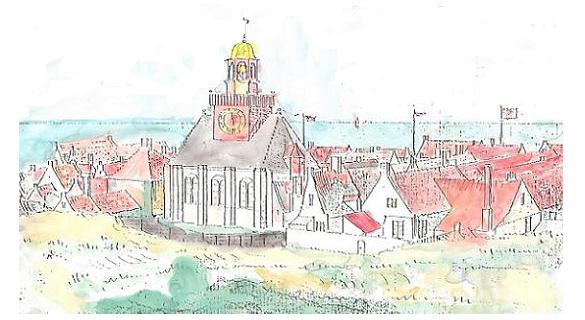 Er staat ’n fraaie, met krijt getekende afbeelding van de Kapel door Notenboom, in ‘Art 48 ‘ Raadhuisstraat 48.