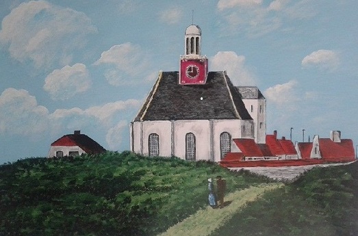 Als er één gebouw in Noordwijk is dat vaak figureert in artistiek schilderwerk dan is het de kapel aan de Hoofdstraat wel. Ik heb 25 afbeeldingen bij elkaar geharkt. Wie ermee begonnen is, doet er niet zo veel toe. Ik begin hierboven met een ets van Karel Kok. En dan komen we vervolgens terecht bij Willem Plug, van wie ik twee verschillende versies heb kunnen ontdekken:
