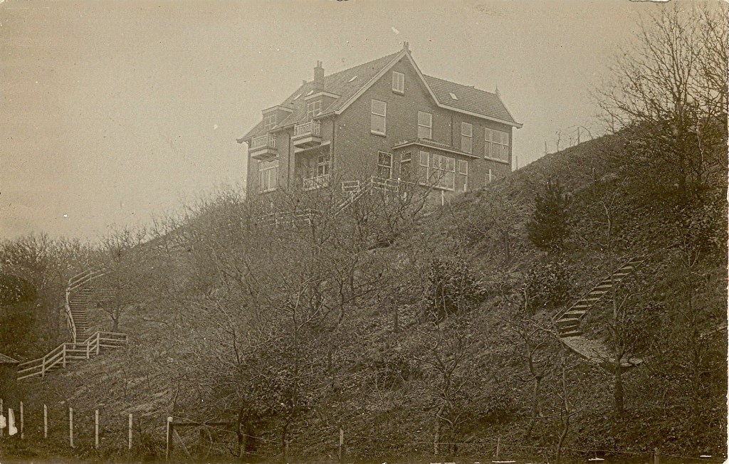 NB Met dank aan Ron: het is toch vanaf het Vinkenveld omhoog gekeken naar de Koepelweg: de villa rechts op het duin is de Villa Eikenloof: