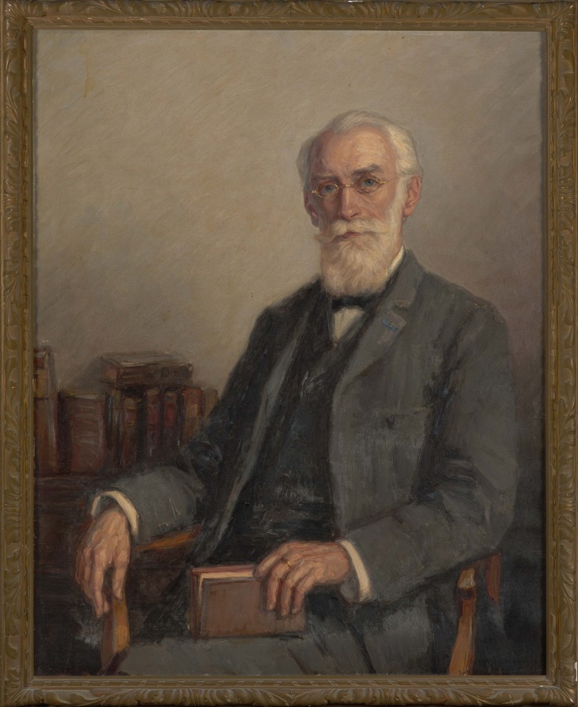 Het schilderij bevindt zich in de collectie van Museum De Lakenhal in Leiden en staat daar te boek onder de titel: ‘bebaarde en bebrilde man met een boek in zijn hand.’ Dat kunnen we zelf ook wel raden. Het schilderij is gemaakt in 1909 door Leo Klein von Diepold, die toentertijd in Noordwijk woonachtig was. De bebaarde en bebrilde man woonde ook in Noordwijk. Zijn naam is P.J. Blok (1855-1929) en hij was hoogleraar Geschiedenis in Leiden. Hij had een heuse villa aan de Noordboulevard, in deze bloggenreeks al eens eerder gedetecteerd.