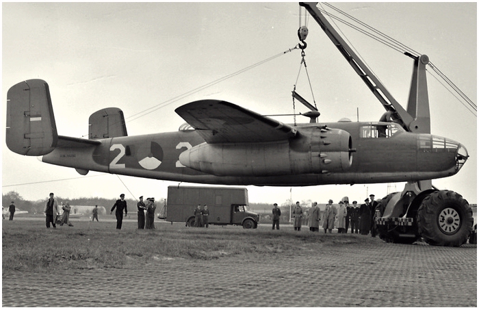 Één van deze (prachtige) vliegtuigen kwam later op de vliegbasis Valkenburg om onduidelijke redenen in de kabels te hangen, zo te zien met een verloren geraakt landingsgestel.