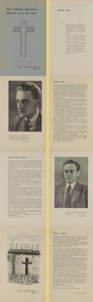 Bovenstaande brochure bracht wel een mooi eerbetoon. De brochure uit 1947 werd in een oplage van 2000 stuks door Drukkerij Dekker & Co gefabriekt voor de somma van 850 gulden.