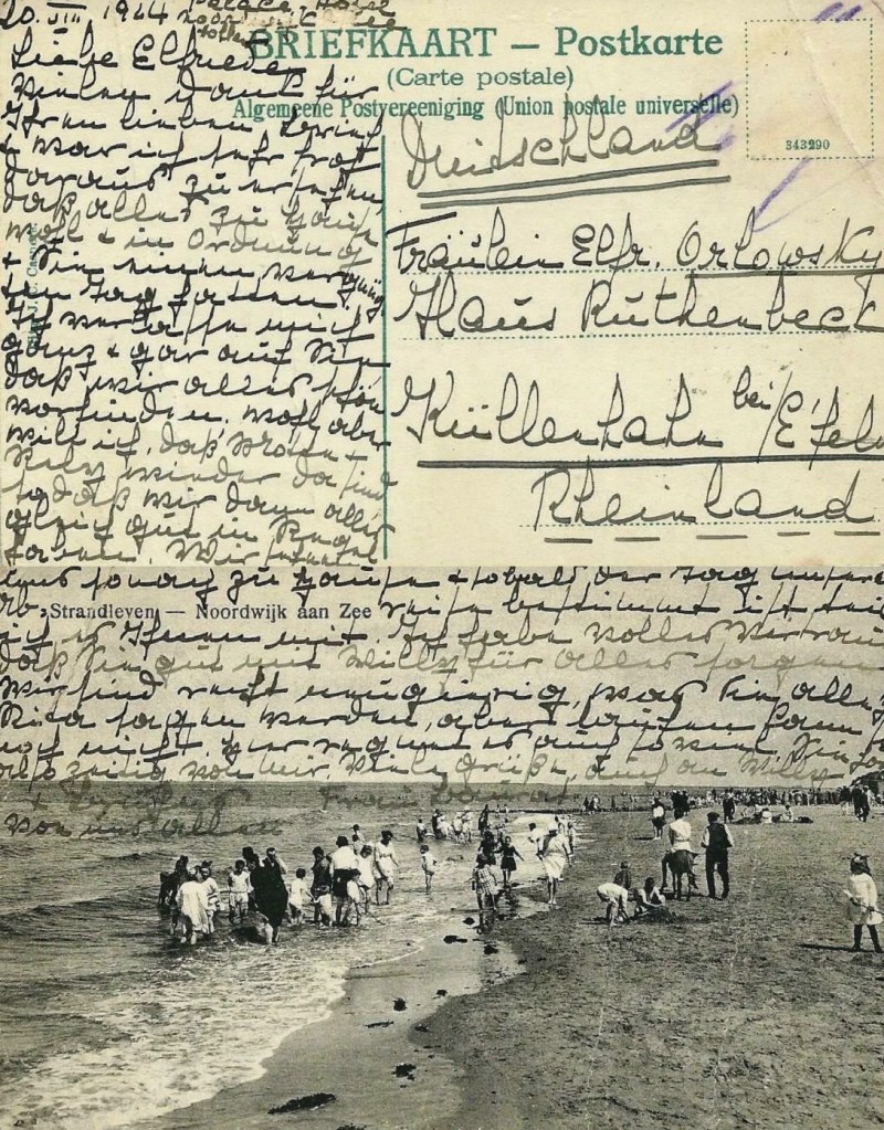 De kaart is gedateerd op 20 augustus 1924 en de afzender heeft vrijwel geen ruimte onbenut gelaten om zijn of haar boodschap in onleesbaar Duits over te brengen. Ook de voorkant werd niet gespaard, wat jammer is. Want dat beeld ben ik nog niet eerder tegengekomen. Had zo mooi kunnen zijn.