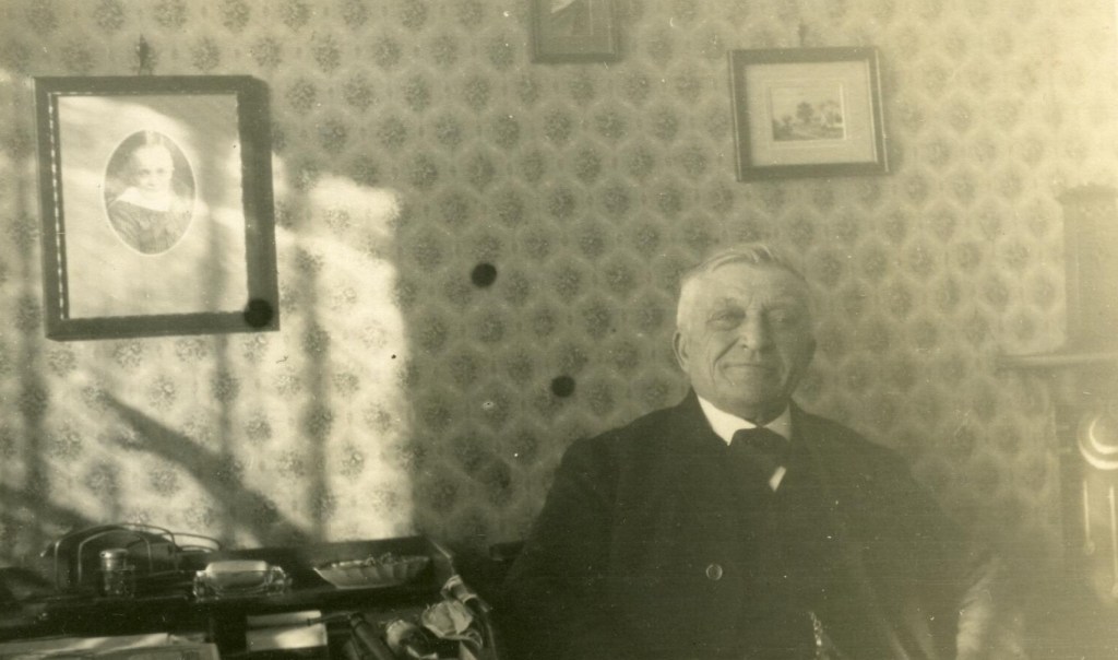 Op de site van Erfgoed Leiden zijn zowaar weer vele nieuwe foto’s uit Noordwijk geplaatst, zij het over het algemeen zonder ook maar één toelichting. Ze komen blijkbaar uit de collectie (welke collectie?) van de Gemeente Noordwijk. Deze zit er ook tussen. Een zelfvoldane heer, getuige zijn kleding van redelijke gegoede afkomst. Ik weet alleen dus niet wie hij is en ook aan de hand van de foto aan de muur kan ik niet eens een slag slaan naar enig aanknopingspunt. Wie weet meer?