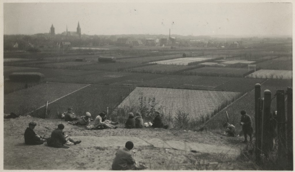 Het is een schilderachtige foto en ik schrijf met opzet ‘schilderachtig’, omdat dit beeld vaker in schilderijen voor komt dan in fotografieën. Op deze plek schilderden onder andere Leo Klein Diepold en Max Liebermann prachtige werken. Deze fotograaf kon er ook wat van. Jaloers op de kids die mee mochten kijken. Iets verderop (meer naar links op de Koepelweg) streden een schilderij en een foto ook al eens om de schoonheidsprijs. Klik hier.