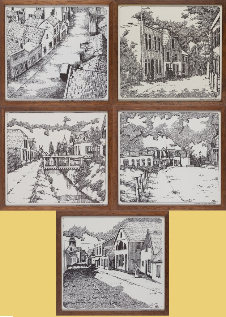 Vijf tekeningen van Arie Plug van omstreeks 1970. Door Museum Noordwijk via de Museumdepotshop aangeboden voor minimaal €95.