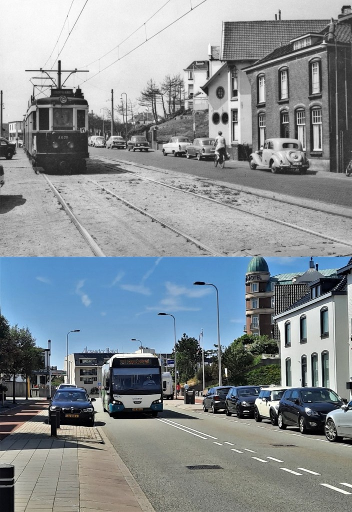 Op de facebookpagina van De Oude Blauwe Tram toont ‘Pappa Jerry’ deze twee foto’s onder elkaar. Ze maken een schitterend contrast tussen toen en nu, tussen – zeg maar – 1960 en 2020. Het meeste is allemaal anders