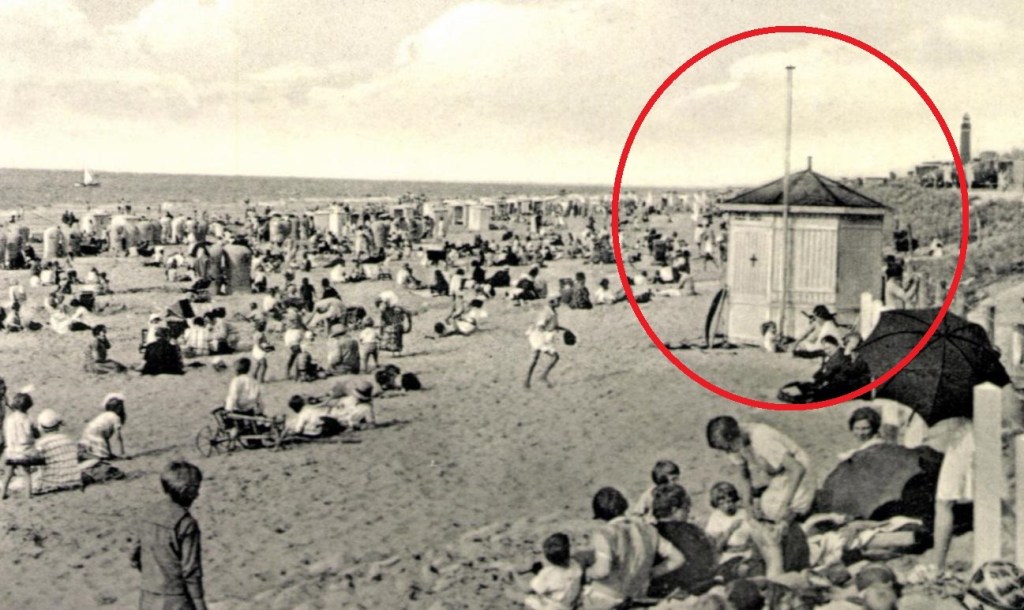 NOTA BENE Ik kom nu een foto tegen waarop twéé van die kiosken op het strand staan. Tja.