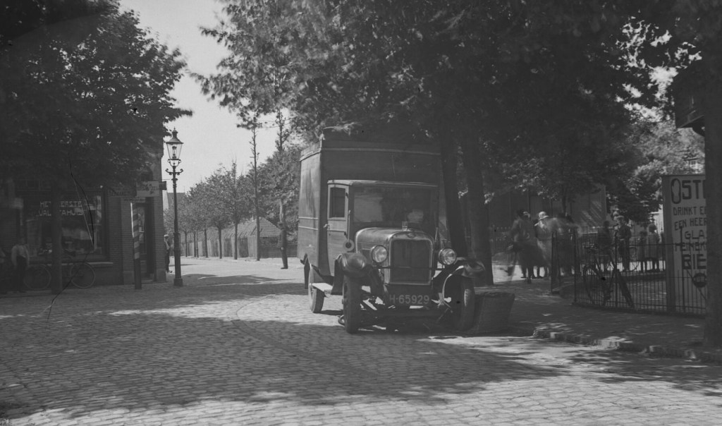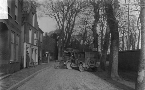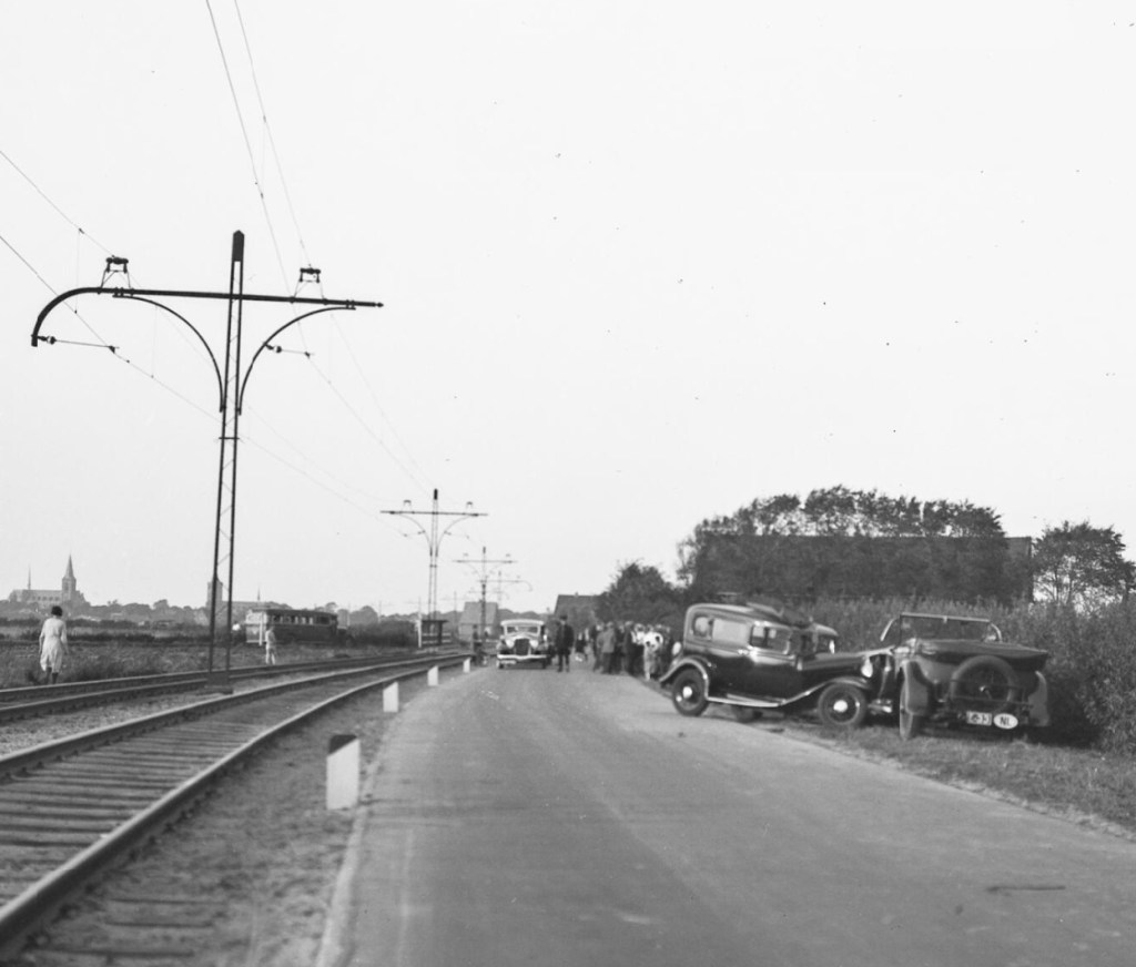 Even verderop, aan het begin van de Gooweg gingen ook twee automobielen de strijd aan:
