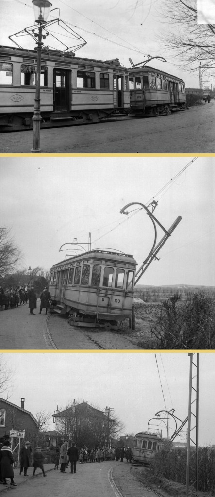 De ontsporing vond plaats op de Nieuwe Zeeweg ter hoogte van Café De Halve Vleet (dat toen misschien anders heette). Wat de oorzaak ervan was is onduidelijk. De oude stoomtram wilde nog wel eens uit de rails lopen vanwege stuifzand, maar dat kan ik me hier niet voorstellen.