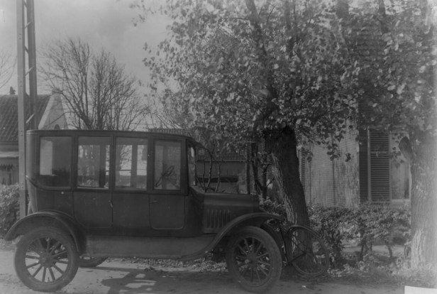 Het sterke is dat de auto (Ford model T) geen beschadigingen laat zien na het te pletter rijden. Er is wel een fiets zichtbaar tussen het front van de auto en de boom. Die fiets met zijn achterwiel lijkt knap verkreukeld.