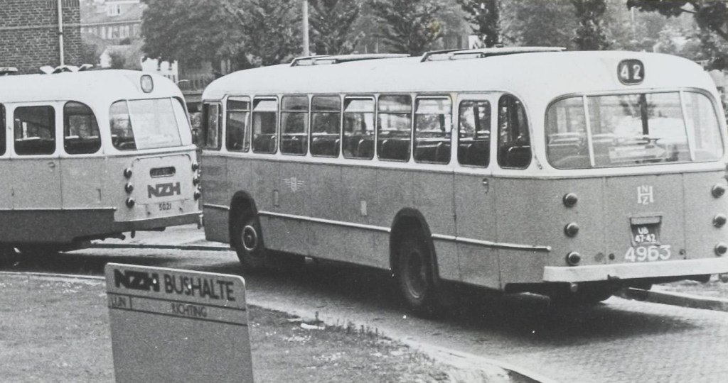 Bus 42 staat ergens in Leiderdorp om vandaar de kuierlatten naar Noordwijk aan Zee te nemen. Ervoor staat nog een bus van lijn 43 (ik weet niet meer waar die naar toe ging). Bus 40 was ook een ‘Noordwijker’ die als eindpunt Leiderdorp had.