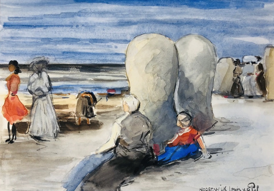 Van de schilder Louis van der Pol (1896-1982) weet ik vooralsnog niet veel meer dan dat hij in 1896 in Amsterdam geboren is en in 1982 in Abcoude overleden. Hij volgde een opleiding aan de Academie voor Beeldende Kunsten in Den Haag en was na 1930 vooral werkzaam in Parijs. Maar hij was ook even in Noordwijk, ik weet niet wanneer, maar daar maakte hij bovenstaand werk.