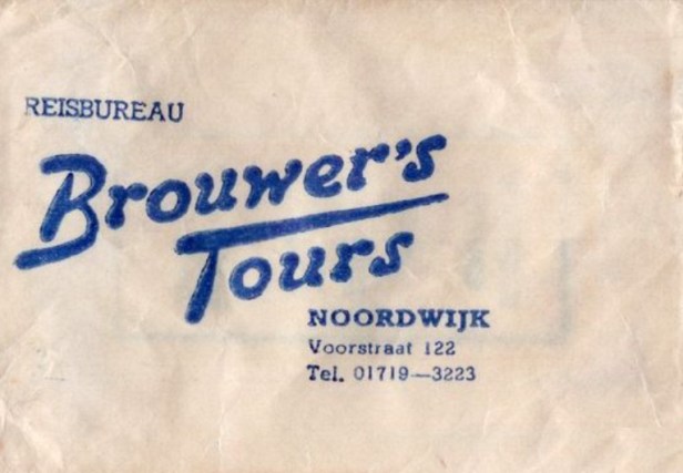 In de tijd dat het kengetal van Noordwijk nog 01719 was, zat Brouwers Tours met zijn bus- en wagenpark nog aan de Voorstraat. Toen het daar wat al te benepen werd voor de bussen, verhuisde men naar een complex achter de hoek Zeestraat/Bronckhorststraat en inmiddels is men verhuisd naar De Klei. Ze zullen tegenwoordig wel andere suikerzakkies hebben, al is het alleen al vanwege het adres en het nieuwe kengetal (en telefoonnummer, neem ik aan).