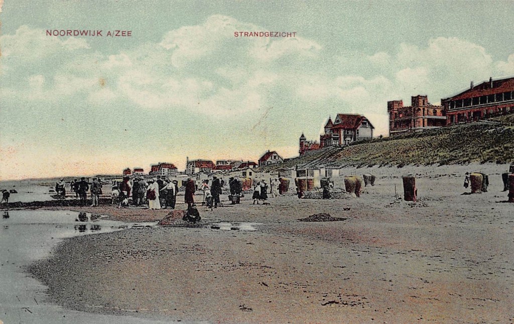 Achterop deze schitterende kaart staat “J.H. Schaefer’s Artochrom Amsterdam” en achter die vermelding gaan hele verhalen schuil, die op internet terug zijn te vinden. Allereerst over de persoon van Schaefer zelf (waaruit blijkt dat het om ‘H.J. Schaefer’ zou moeten gaan, dus omgewisselde initialen). En verder zat er een hele systematiek achter de uitgaven van Schaefer, waarin Noordwijk overigens niet te ontdekken valt. Mais soit. Laat onverlet dat het een prachtige kaart is.